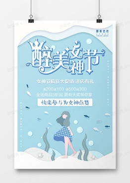 蓝色简约醉美女神节日海报