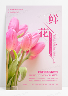 清新粉色郁金香鲜花店时尚花坊海报模板