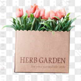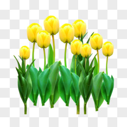 手绘剪纸风一盆黄色郁金香盆栽免抠元素