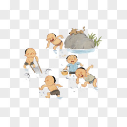 卡通小孩抓鱼