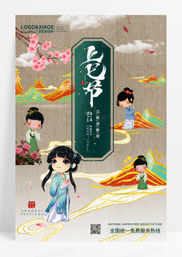 国潮古风汉服游园会上巳节玉兰花海报