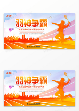 大气炫彩羽神争霸羽毛球比赛展板背景设计