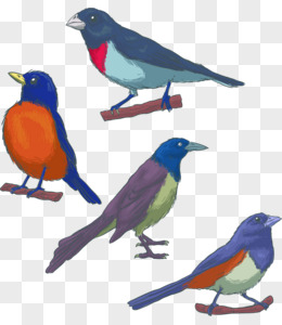 手绘黄蓝色羽毛小鸟