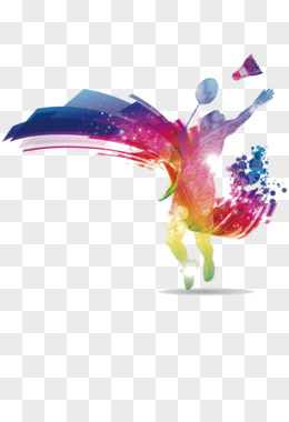 一组手绘插画风运动员运动套图合集之打羽毛球素材