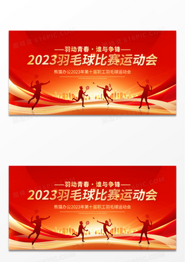 一组手绘插画风运动员运动套图合集之打羽毛球素材