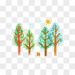 卡通装饰可爱元素 蜡笔画树木风景