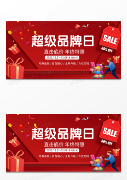 手绘卡通大气彩带云彩超级品牌日促销展板设计