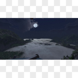 蓝天下月亮云层山峰
