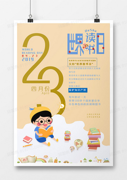 淡雅色卡通简约创意风世界读书日节日海报