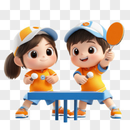 卡通矢量学生运动打乒乓项目素材