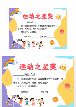 蓝色卡通运动之星奖体育运动会颁奖奖状证书