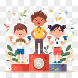 卡通人物领奖颁奖台免抠元素