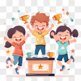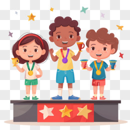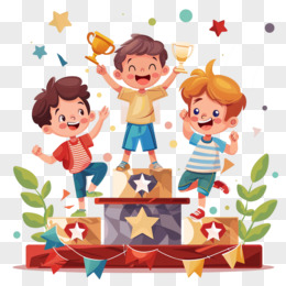 孩子们在颁奖台上领奖的插画元素
