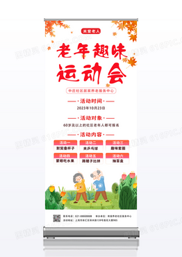 简约卡通老年趣味运动会关爱老人身体健康展架趣味运动会展架