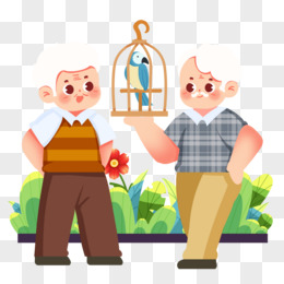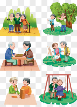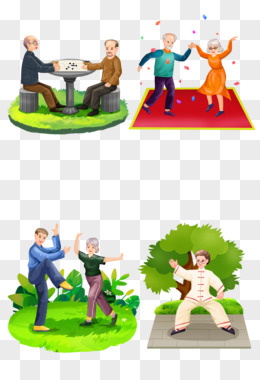 一组创意插画老人娱乐活动老年活动退休元素合集一