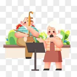 一组创意插画老人娱乐活动老年活动退休元素合集六