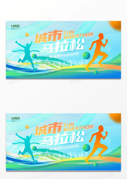 蓝色大气2023全民马拉松宣传展板马拉松跑步