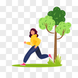 手绘卡通运动的女青年免抠元素