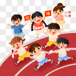手绘插画风小朋友的接力比赛跑步场景元素