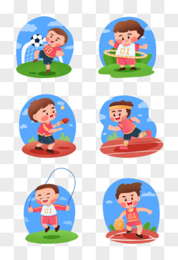 一组卡通手绘学生运动场景系列图元素