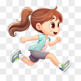 手绘卡通女孩运动跑步免抠素材