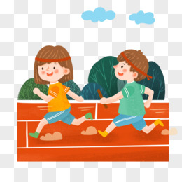 插画风运动两个年轻男孩在跑步比赛中免抠元素