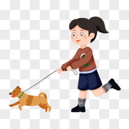 手绘女生遛狗跑步素材