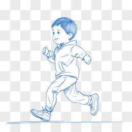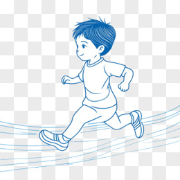 蓝色线条一个小男孩在跑步线稿免抠元素