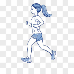 蓝色线条一个年轻女孩在跑步线稿免抠元素