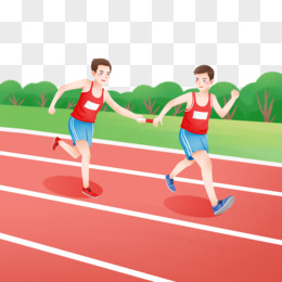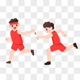卡通手绘红衣服运动员在参加接力比赛免抠元素