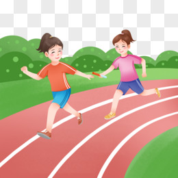 手绘女子接力赛递赛棒场景元素