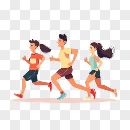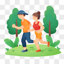 插画风运动两个年轻男孩女孩在跑步免抠元素
