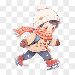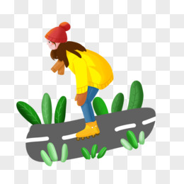 卡通手绘女孩在滑板上保持平衡免抠素材