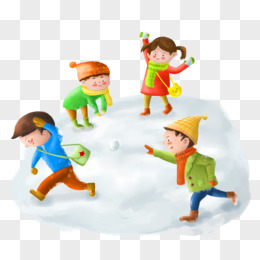 手绘小朋友们打雪仗扔雪球素材