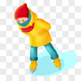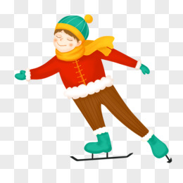 手绘冬季男孩户外滑冰素材