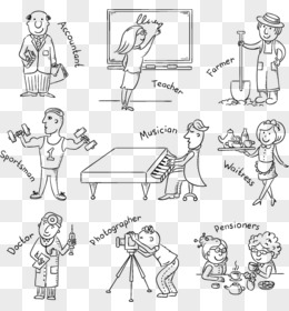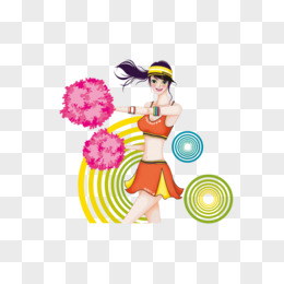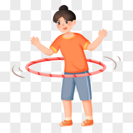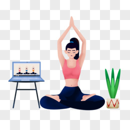 卡通手绘女孩跟着视频一起做瑜伽免抠素材
