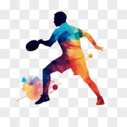 彩色剪影职业人物乒乓球运动员免抠元素