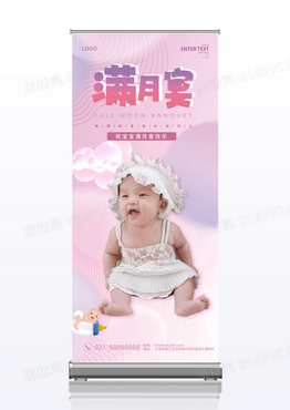 粉色可爱清新婴儿满月宴活动易拉宝展架