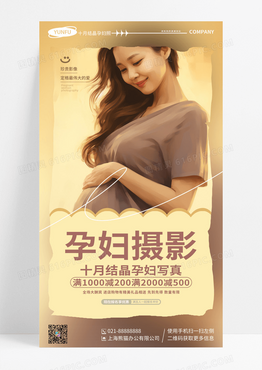 简约插画孕妇摄影孕妇写真手机宣传海报
