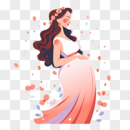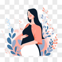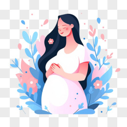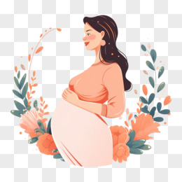 手绘线稿线条孕妇妈妈人物形象免抠元素