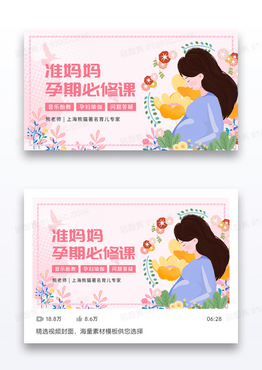 简约粉色清新唯美孕妇手绘插画课程封面手机配图