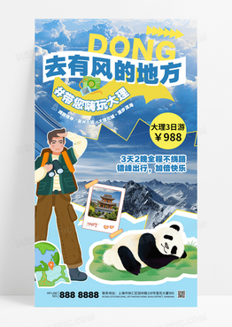 蓝色拼接风旅游旅行去有风的地方大理云南海报