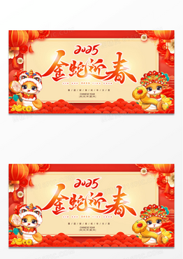 大气红色时尚传统2025蛇运亨通蛇年2025春节展板设计