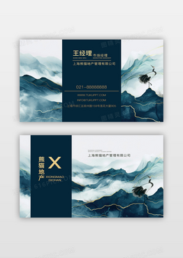 水墨山川云雾缭绕鎏金古风大气中式元素烫金名片模板