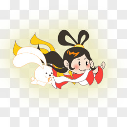 中秋节手绘卡通嫦娥玉兔免抠元素