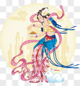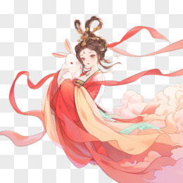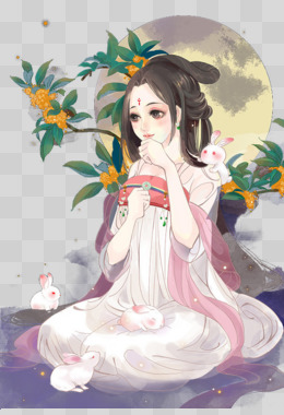 手绘中国风嫦娥奔月玉兔神话故事人物免抠元素