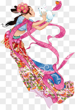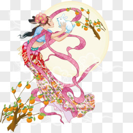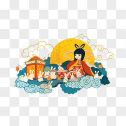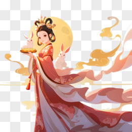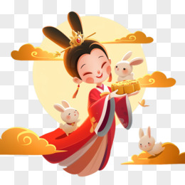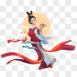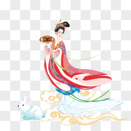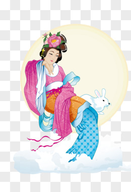 中秋节神话传说人物嫦娥奔月玉兔免抠元素