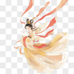 手绘中国风嫦娥奔月玉兔神话故事人物免抠元素