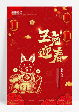 手绘矢量唯美国风玉兔灯笼挂饰吊饰素材