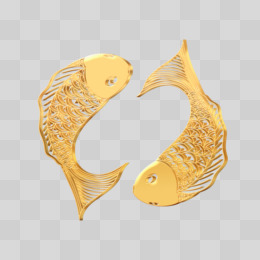 立体金色双鱼免抠装饰元素